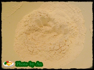 โรยแป้งมันบนเขียงพลาสติคให้ทั่ว ( แต่อัญใช้เขียงไม้ เพราะขี้เกียจหยิบ แต่ทำไปได้อันเดียวก็เปลี่ยนเป็นเขียงพลาสติค ใช้เขียงพลาสติคดีกว่า ลื่นดีกว่าด้วย )