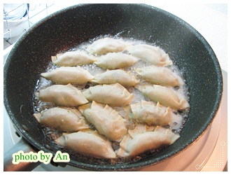 เมื่อพับเรียบร้อยแล้วก่อนจะวาง พักไว้ขนจาน ให้ทาน้ำมัน หรือ โรยแป้งบนภาชนะที่เราจะวางก่อนให้ทั่ว เวลานำไปทอดจะได้ไม่ติด ( เคยทำครั้งแรกแล้วไม่ทา ตอนจะทอดแกะไม่ออก แกะออกไส้ก็แตก กินไม่ได้เลย ) เวลาทอดก็ทาน้ำมันบนกะทะพอทั่วๆ อย่าให้เยิ้ม พอร้อนก็เอาเกี้ยวซ่าไปวางเรียงตามชอบค่ะ ปิดฝาไว้