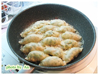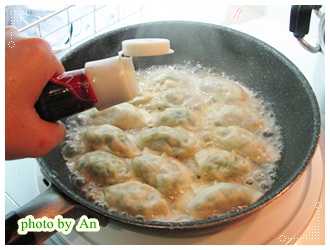 รอให้น้ำแห้งลงสักพอคลุกคลิก ก็เทน้ำมันงาตามขอบกะทะสัก 1 ช้อนโต๊ะ ปิดฝาอีกครั้ง พอน้ำแห้งแล้ว เหมือนในรูป เอาจานมาคว่ำบนกะทะ แล้วคว่ำกะทะกลับลงอีกที ก็ได้เกี้ยวซ่าทานสมใจสักที